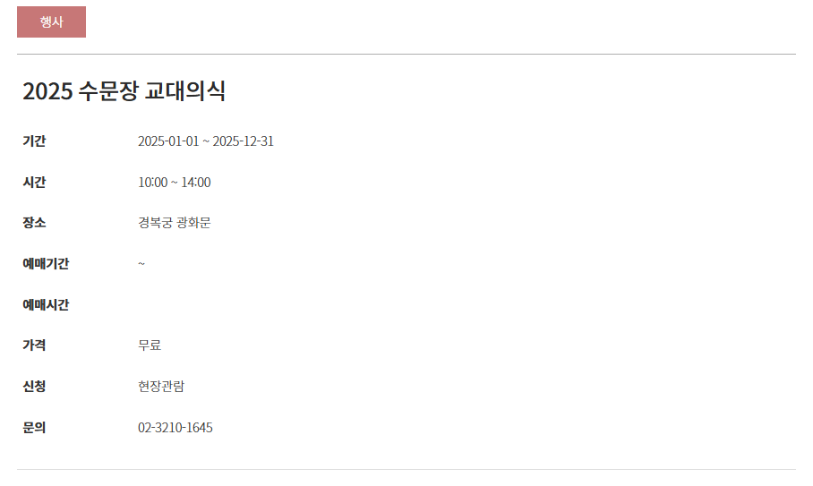 -행사시간 : 교대의식 및 파수의식 후 광화문 임직근무(매시간)