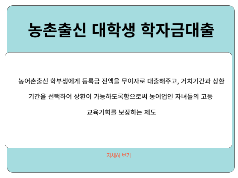 º농촌출신대학생 학자금대출 : 조건별 최장 기간 내 원금균등분활상환
