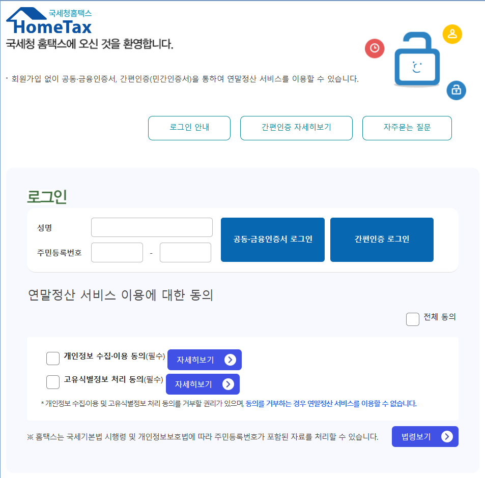 국세청 홈페이지로 들어가시면 일단 로그인을 하셔야 합니다.