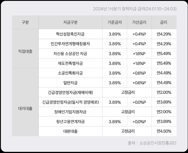 한 눈에 보는 2024년 소상공인 정책자금 금리